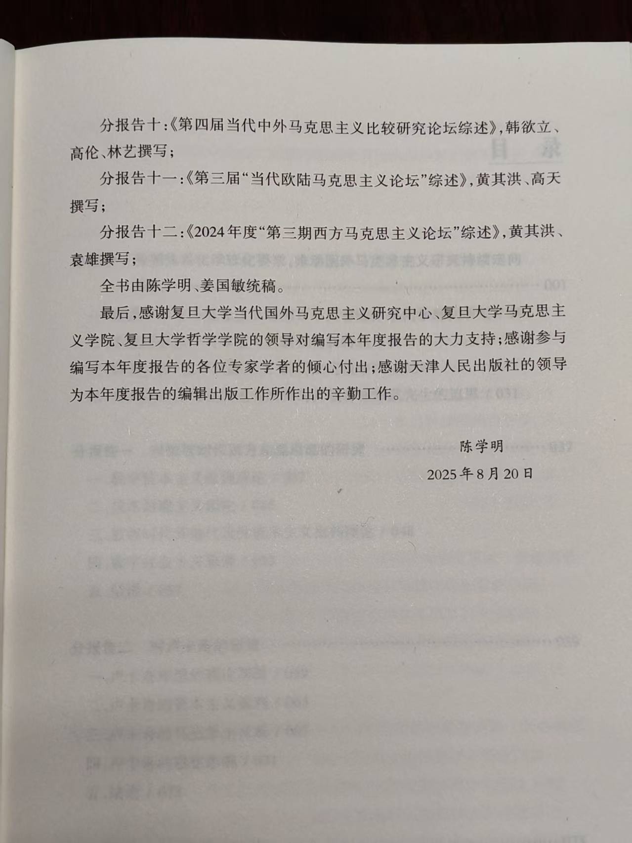 该报告由复旦大学当代国外马克思主义研究中心、复旦大学马克思主义学院和复旦大学哲学学院主编,天津人民出版社出版,由于其内容的前沿性、全面性、权威性和深刻性,该报告已经成为国内学界了解外马学界的最新学术动态的重要参考,同时,也在一定程度上影响着国内的外马学界青年学者的研究兴趣、研究方向和研究方法,可以说,这个年度报告已经成为国内的外马学界的风向标之一。《国外马克思主义研究发展报告(2024)》对2024年度全国“国外马克思主义研究”二级学科的研究工作做出了及时且到位的总结,紧跟国外马克思主义研究的最新动态和成果,对当下的热点议题、前沿观点以及重点人物进行了概括、述评和总结,具有较高的代表性,客观全面地反映了学科的年度态势,为该学科建设和理论发展提供了一份重要的材料。